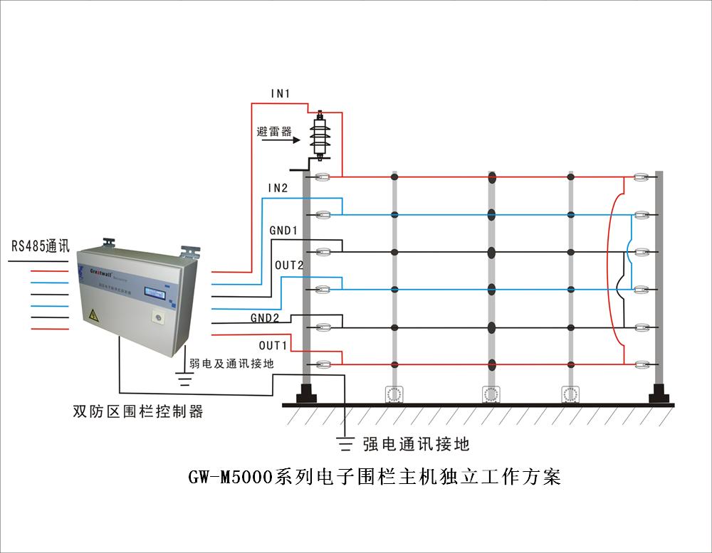 高压单(双)防区电子围栏主机(GW-M5000系列)采用IP66防水等级外壳,单双防区均有供货,满足了业主对成本低廉,同时又持久耐用的现实需求。